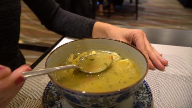 Düşbere, görünüşü itibariyle mantıyı anımsatsa da aslında bir çorba. Kıymanın hamur içerisine doldurulup kapatılmasıyla yapılan mantılar zerdeçallı veya safranlı koyun eti suyu içerisinde pişirilip servis ediliyor. Hatta tıpkı Türk kültüründeki gibi mantıların olabildiğince küçük yapılması makbul, bir kaşığa on tane mantıyı sığdırmak gerekiyor. Kuru nane serptikten sonra arzuya göre sarımsaklı sirkeli sosla yeniyor.