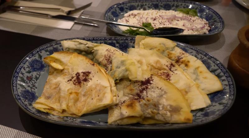 Qutab, incecik açılmış yumurtalı hamurun içine bal kabağı, kıyma ya da çeşitli yeşillikler konduktan sonra sacda pişirilerek yapılan bir yemek. Türk mutfağındaki gözlemeyi anımsatan bu yarım ay şeklindeki lezzet, her iki tarafı da mis gibi tereyağı ile yağlandıktan sonra sumak, rezene ve kişnişle servis ediliyor, arzuya göre yoğurtla da tüketilebiliyor. Gün içinde kenti dolaşırken hızlı atıştırmalık isteyenler için de bire bir. Üstelik fiyatları da çok makul.