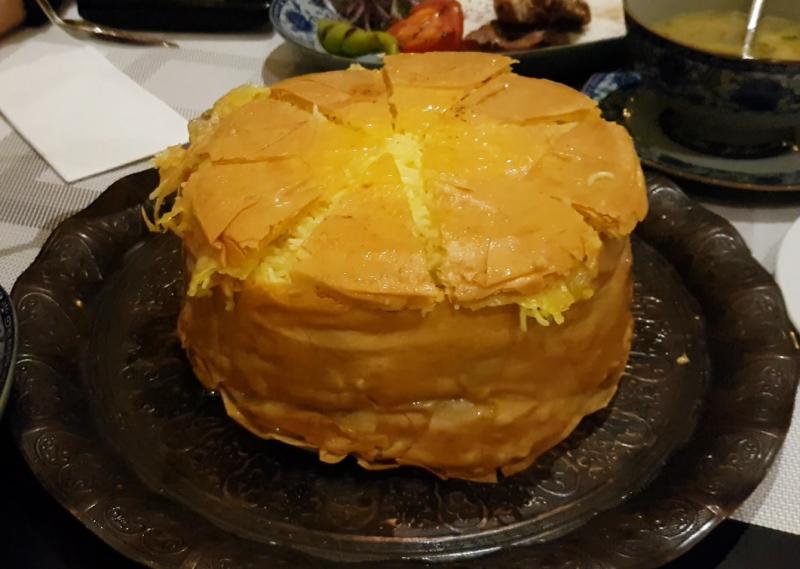 Çıtır çıtır hamurun içine hapsedilmiş ve fırınlanmış bu mis kokulu pilav özel günlerde sofranın hemen ortasındaki yerini alıyor ve hem göze hem de mideye hitap ettiğinden hızlıca mideye indiriliyor.