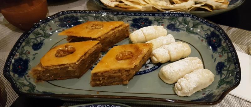 Bir başka tatlı ise, kurabiyeyi andıran mutaki. İçerisinde ceviz bulunan bu hamurlu tatlı damaklarda hoş bir tat bırakıyor ve ağırlık yapmıyor.