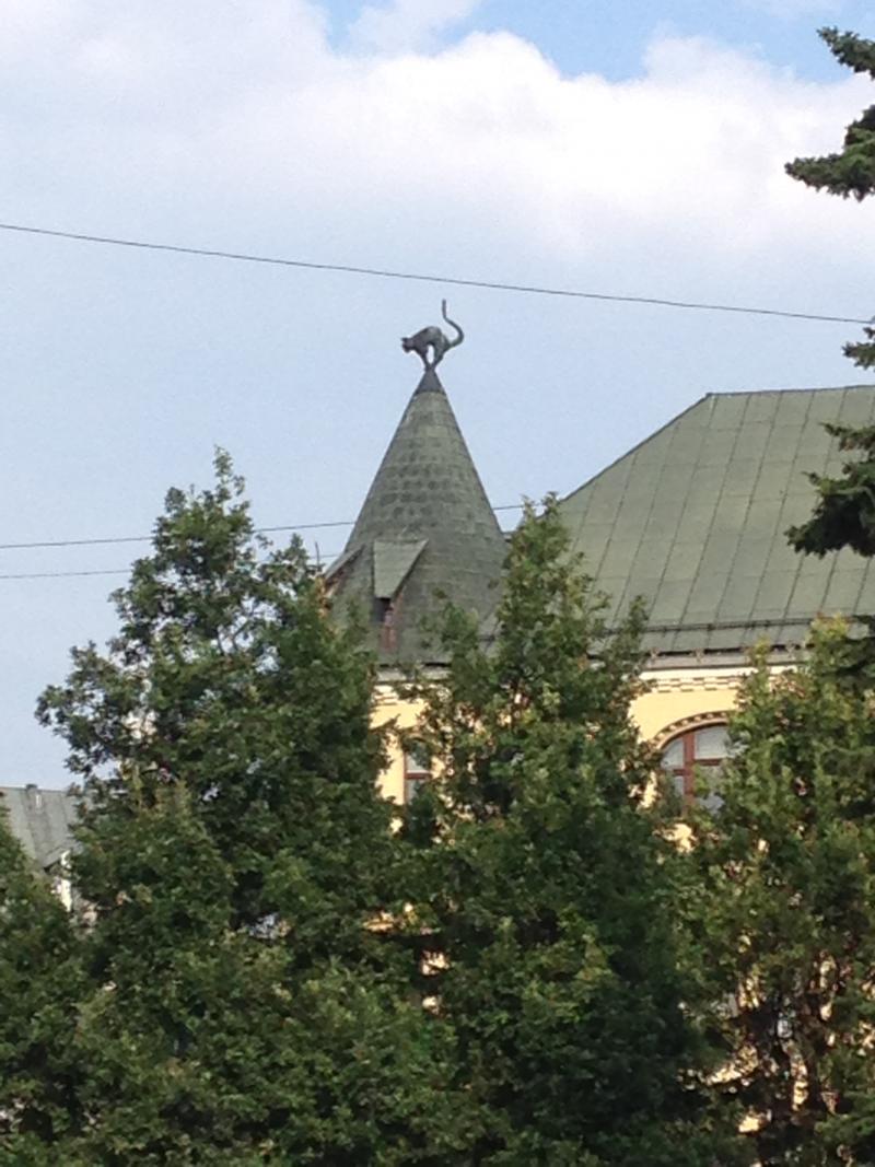 İşte bu tanımlamayla sözlerine başladı rehberimiz. Riga’ya gece gelmiş olmamıza rağmen o kadar aydınlık bir şehirdi ki… Işıklar, rengarenk evler, çiçekler ve kara kediler… Evet doğru, her yerde kedi resmi vardı ve bunların hepsi siyah renge boyanmıştı. Vakti zamanında bölgenin ileri gelenlerinden bir şahsiyet parlamentodan kovulur. Çok sinirlenir ve evinin çatısına iki kara kedi heykeli koydurur. Bu heykellerin kuyrukları parlamentoya bakacaktır. Sonra parlamentoya geri çağrılır ve o zaman kedilerin yüzünü parlamentoya çevirir. O gün bugündür Riga bu kara kediler ile anılırmış.