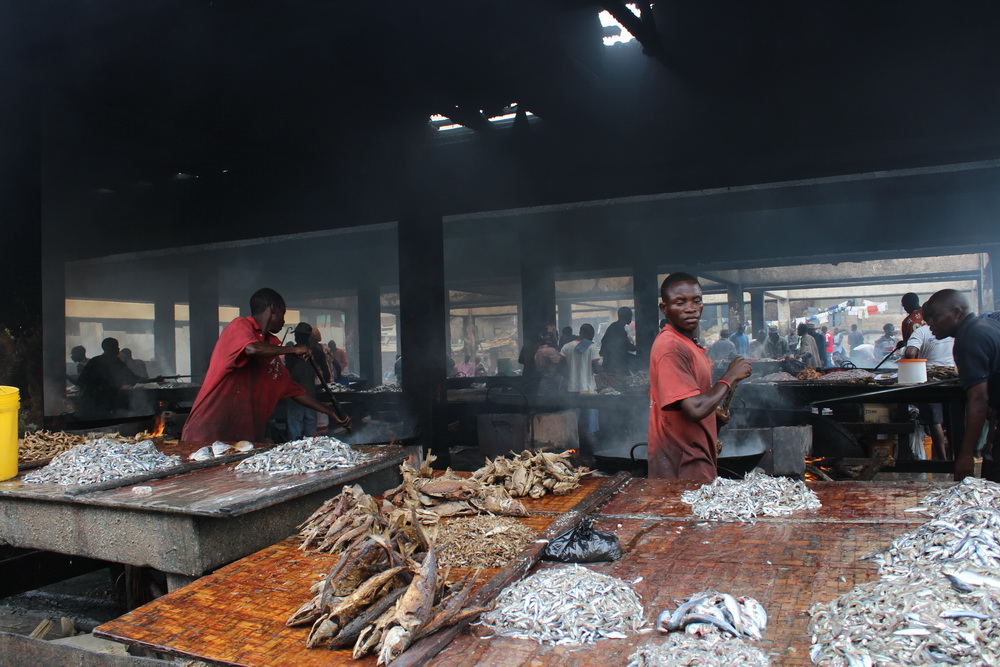 Pazarın içlerine doğru ilerledikçe gittikçe artan bir balık kokusu yükseliyor. Bazı tezgahlarda denizden yeni çıkmış balıklar satılırken bazı tezgahlarda hemen orada pişirilmiş deniz ürünleri satılıyor.