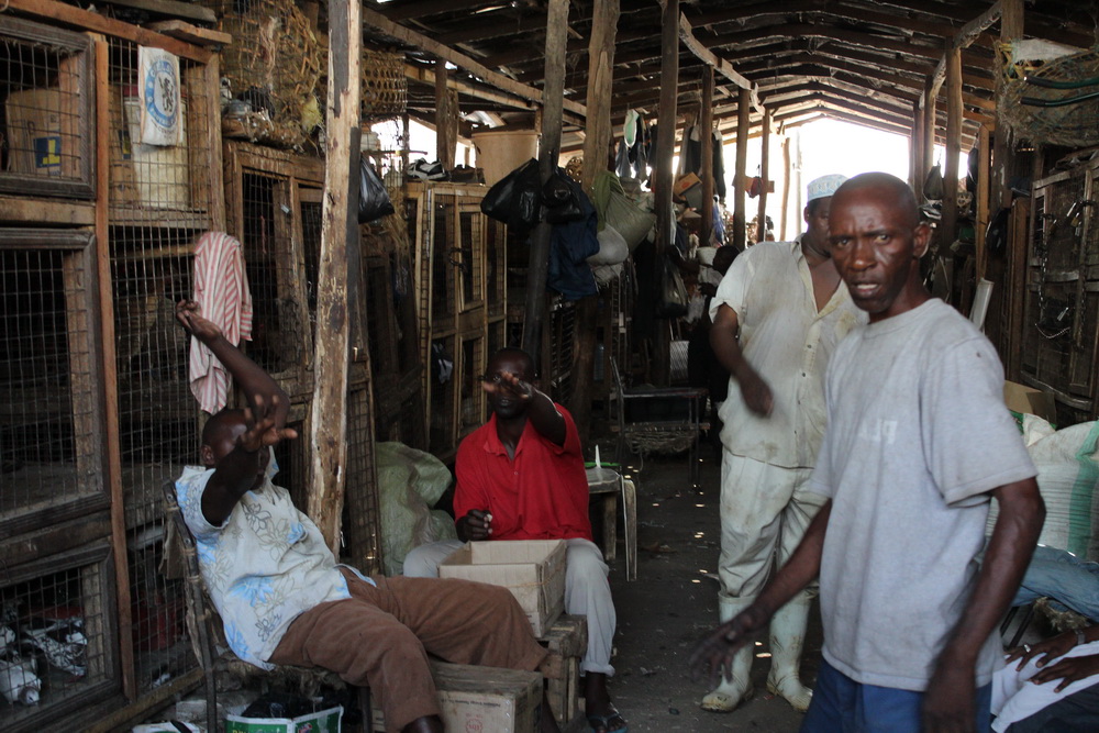 Yine meyve pazarında yolumuza devam ederken kümes hayvanlarının bulunduğu bölüme geliyoruz. Her çeşit kümes hayvanını da burada canlı canlı almak mümkün.