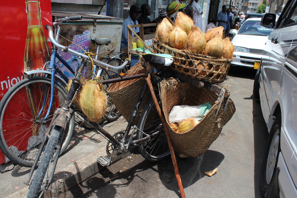 Pazarın girişinde bisikletle dolaşıp Hindistan cevizi satanları görüyoruz. İstediğiniz anda, hemen oracıkta Hindistan cevizini hazırlıyor. Suyunu içip ardından içini yiyorsunuz.