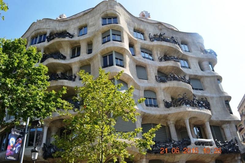 Casa Batllo’nun birkaç metre ilerisinde, yine Passaig de Garcia üzerinde sanatçının Dünya Mirası listesinde yer alan muhteşem bir eseri de Casa Mila ya da La Pedrera. Dışardan bakıldığında hiç düz duvarı olmayan, ince detaylar ile süslenmiş muhteşem bina, 1912 yılında tamamlanmış. Şehrin tam merkezinde, popüler bir cadde üzerinde, Casa Batllo gibi kendini hemen belli eden, “bu bir Gaudi eseri” dedirten binanın terasından muhteşem Barcelona manzarası izlenebiliyormuş ama ne yazık ki bu keyif için bizim vaktimiz yok. Binayı dışardan seyretmek, incelemek bile keyifliydi.
