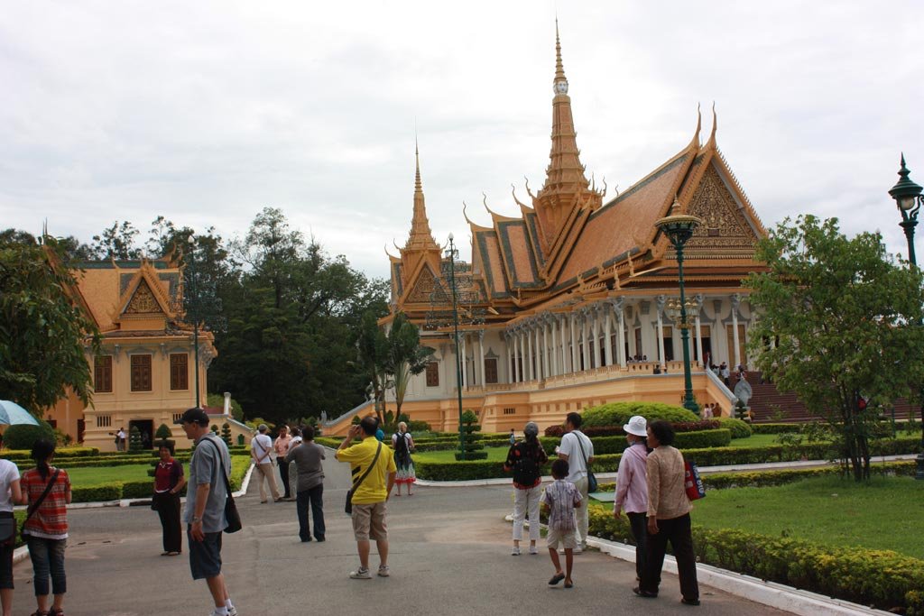 Daha sonra Kraliyet sarayı ve gümüş pagodayı görmeye geliyoruz. Burası çok büyük bir yerleşim. Kraliyet sarayı, çok büyük ve görkemli. Bahçede tören binası, konuk evi, dans gösterileri binası ve kralın evi bulunuyor.