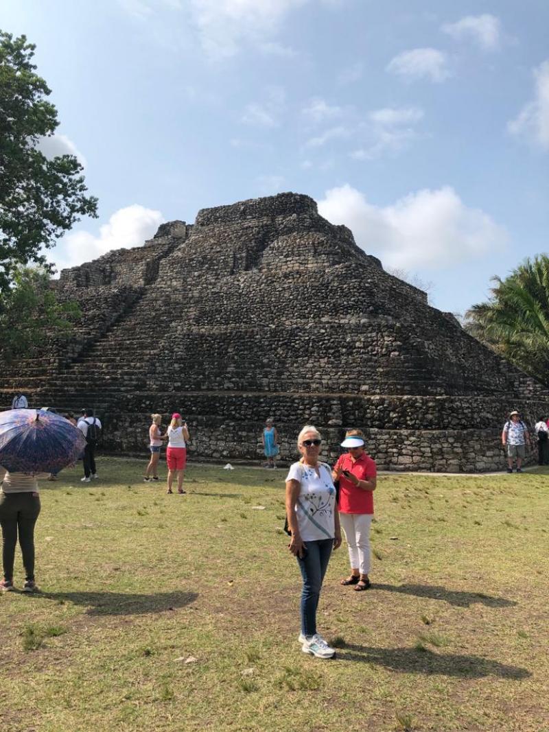 Honduras'ın bu turistik adası çok şirin ama beni en çok heyecanlandıran, daha önce hiç görmediğim slot hayvanını görme imkanım oluyor. Bu şirin hayvan öyle yavaş hareket ediyor ki gözlerinize inanamıyorsunuz. Daha önce hiç görmediğim hayvan neredeyse kalmamıştı ama bu slot beni çok mutlu etti. Bakıcısının kucağında resimlerini çektik. Yalnız bu geziden aklımda sadece niye bu sevimli güzellikle beraber resim çektirmedim diye hayflanarak döndüm. İnşallah ilerki aylarda torunum anne babası ile gidecek. O bol bol resim çektirir. Gezimizi güzel bir denizle taçlandırıyoruz. Tabyana Plajı'nda muhteşem bir deniz havası, kum ve güleryüzlü insanlar var. Bir de güvenlik had safhada; sahilde devamlı korumalar geziyor, kendinizi güvende hissettiriyorlar. Mutlu, mesut, yüzümüzde gülücükler, ve artık aramda bir bağ kurduğum sevgili gemimize geliyoruz. Akşam türlü yiyecekler, aktiviteler, şovlar, her biri uluslararası düzeyde. Yataklara gitme vakti çünkü ertesi gün Chacchoben'e gideceğiz.