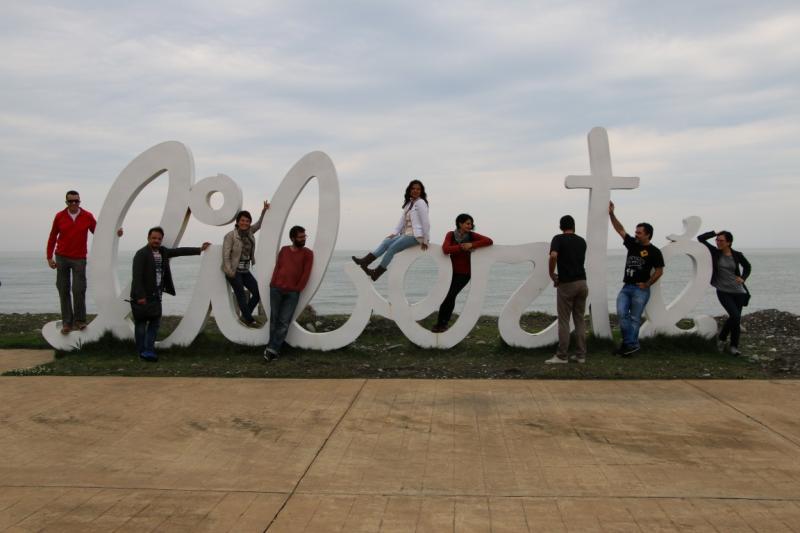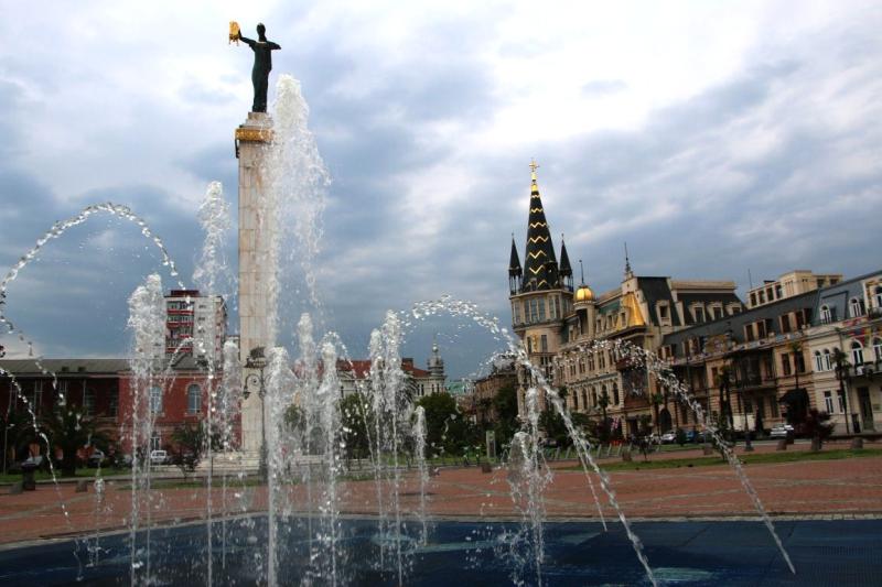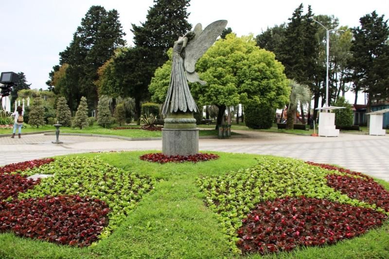 Bir sonraki sabah Tako ile birlikte bize gezimizde eşlik edecek gittiğimiz yerleri tanıtacak olan Salome de katıldı. Önce otelde yürüyerek başladık turumuza. Otelimizin yanından Karadeniz’e uzanan park alanında kısa bir yürüyüş ile başladık geziye. Ortasında fıskiyeli havuzların yer aldığı geniş bir park alanı burası.