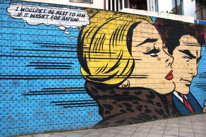 Yürürken çevreye baka baka gidin her köşede ufak detaylar bulabilirsiniz. Mesela geçtiğimiz senelerde düzenlenen Batum sokak sanatı festivalinde yapılmış graffitilerden biri. Adam neye sinirli bu kadar anlamadım : )