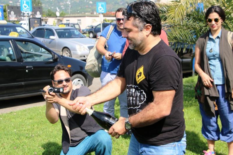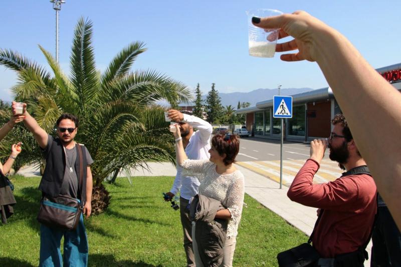 Biz Batum’dan ayrılırken havaalanı önünde bir şişe şampanya patlatıp Batum’a yeniden gelmeyi dileyerek tamada yaptık.