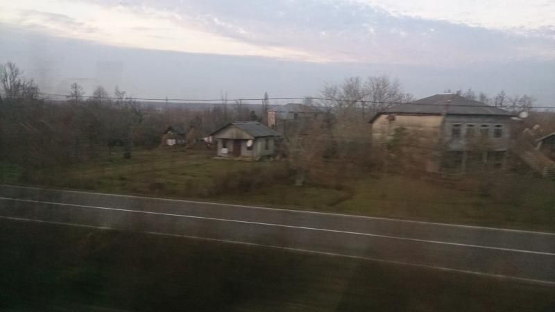 Tiflis'e yolculuğumuza tren ile giderken, yolda gördüğümüz tek manzara sürekli buydu. Şehir dışındaki yaşam oldukça fakir. Yolculuğumuzu araba kiralayarak yapmayı düşündüysek de gördüğümüz birçok trafik kazası fikrimizi değiştirmeye yetti.