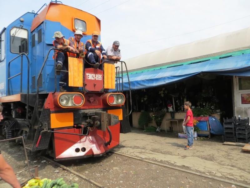 Batum Pazarı'nın içinden geçen tren ilginç bir manzara oluşturuyor. Trenin geçişi sırasında pazar tezgahları toplanıyor.