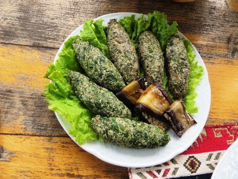 İnce ince dilimlenen patlıcanların üzeri ceviz ve baharatla kaplanıp yağda kızartılıyor. Genellikle yaz aylarında yapılan bu yemek soğuk servis ediliyor.