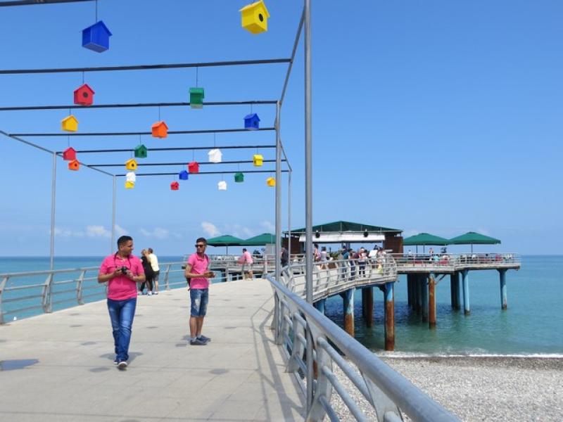 Batum Bulvarı’nda gezerken mutlaka görmeniz gereken yerlerden biri, Pier Batumi (Batum Limanı). Manzaraya karşı yemek yemek isterseniz, burada ve limanın karşısında güzel kafeler bulunuyor.