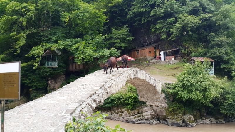Yemyeşil dağlar, otantik küçük şirin köyler, kemer köprüler, şelaleler Batum’a yalnızca yarım saat uzaklıkta. Doğu Karadeniz bölgemizin bir uzantısı şeklinde. İnsanların konuşmalarını duymasanız kendiniz Türkiye’de hissedebilirsiniz. Makhuntseti Nehri üzerinde bulunan aynı adlı şelale ve kemer köprünün güzelliği büyüleyici...