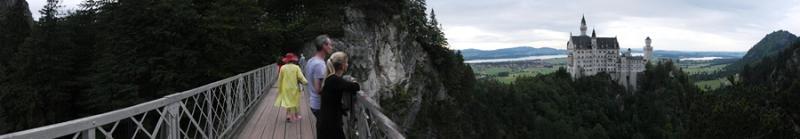 Neuschwanstein Şatosu ve karşısındaki çelik seyir köprüsü