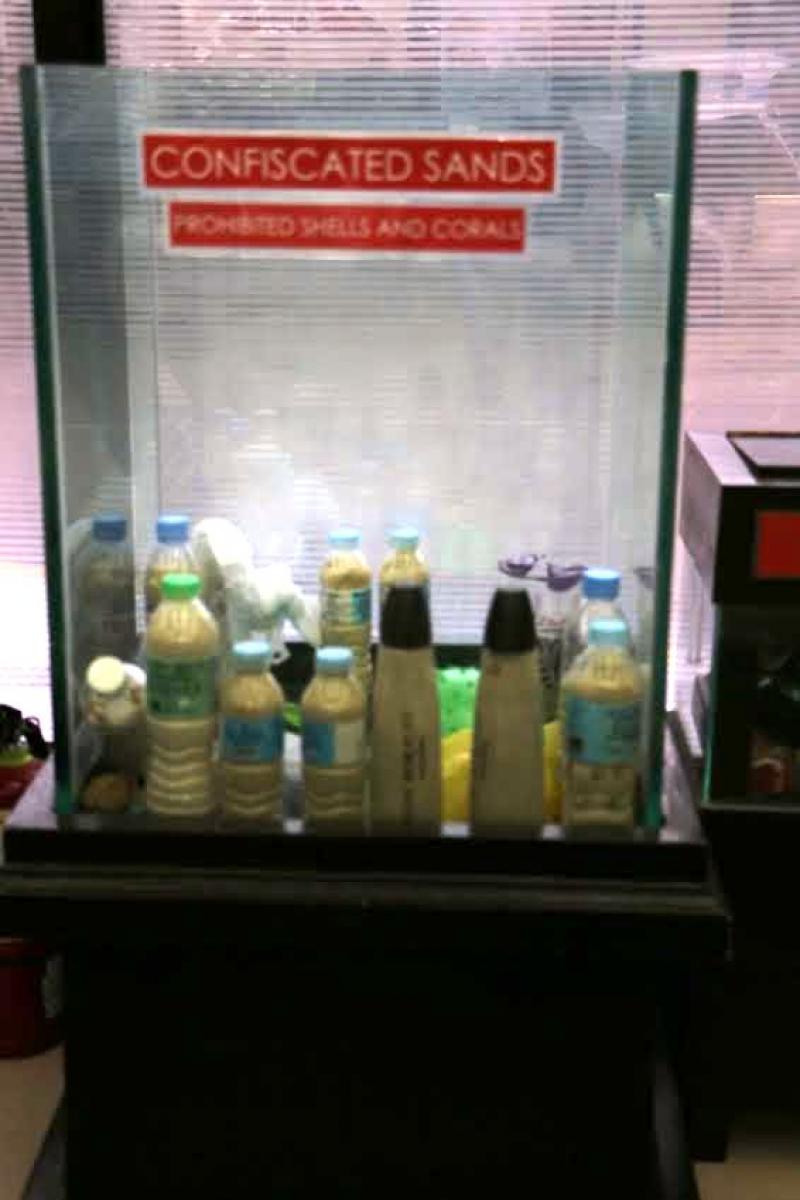 Havaalanına gittiğimizde çantalarımızı oldukça detaylı kontrol ediyorlar. Çünkü bu adadan mercan ya da kum alıp evinize götürmek yasak, denerseniz de zaten el koyarlar.