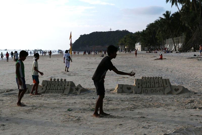 Sahilde yürürken küçük çocukların kumdan kaleler yaptığını ve üzerine Boracay yazdıklarını göreceksiniz. Bu ufaklıklar bizim sahillerde olduğu gibi dilenerek değil, sanat yaparak para kazanıyorlar.