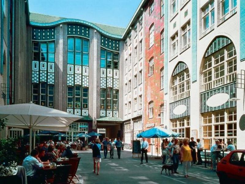 Burası da Berlin Mitte’de yer alan yerlerden biri. Kabaca anlatmaya çalışırsam burası avlulu binalardan ve bunları birbirine bağlayan küçük yollardan, bahçelerden oluşan bir yapılanma. Eskiden yahudi aileler de burada ikamet ederlermiş. Şimdilerde ise bu güzel avlulara bakan küçük, kendine has butikler var. Üstelik bazıları oldukça spesifik mesela sadece papyon satan ya da sadece şapka satan dükkanlar gibi. Binalar restore edilmiş, iki avluyu birbirine bağlayan ufacık birkaç metrelik yollara bile Berlin’in klasik trafik işaretlerinden koyulmuş. Buranın atmosferi biraz daha durgun, biraz daha farklı bir tada sahip.