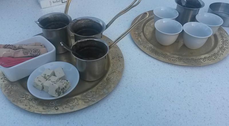 Arak içip güzel yemekler tattığım restoran Kababji idi. Amerikan Üniversitesinin karşı sokağında. Kahvemi marinada içtim. Kahve sunumları aşağıdaki gibi, bizdekinden biraz daha sert kahveleri var. Tabii yanında herkes nargile içiyor.