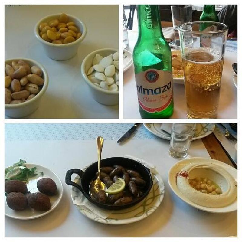 Beyrut'ta sofraya ilk önce kuruyemişler geliyor. Kabak çekirdeği hemen hemen her yerde mutlaka masada. Abd-el Wahap'ta yemeğime Almaza denen Lübnan birası eşlik etti hafif ve güzeldi.