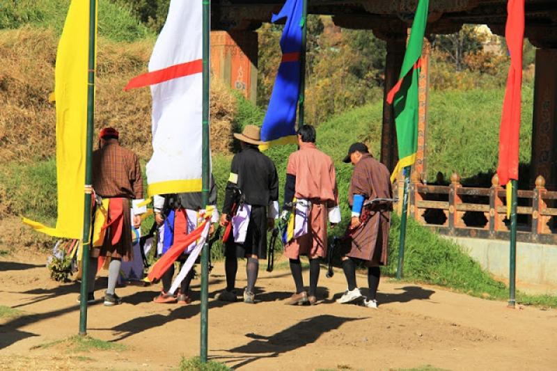 Yarışacak 2 takım birbirlerinden yaklaşık 140 metre mesafe uzaklıktaki birer hedef tahtasının etrafında toplanıyorlar. Okçular, üzerlerinde yerel giysileri Gho’ları olduğu halde diğer takımın bulunduğu taraftaki hedefe oklarını atıyorlar. Yani mesafe yaklaşık 140 metre… Ve adeta hedefi görmek bile zorken Bhutan’lı okçular bu mesafeden hedefi tam ortadan vurabiliyorlar. Bir yarışmacı hedefi vurduğunda diğer takım hedef tahtasına saplanmış okun karşısına geçip dans edip şarkı söyledikleri bir ritüel gerçekleştiriyor. Keza eğer ok hedef tahtasına denk gelmez ise yine farklı bir ritüelleri var ki; bunu dönüp diğer takıma doğru yapıyorlar ve alay dolu bir içeriği olduğunu anlamak için Bhutan dilini anlamak gerekmiyor. Bu haliyle bir okçuluk müsabakasını izlemek inanılmaz keyifliydi…