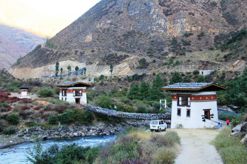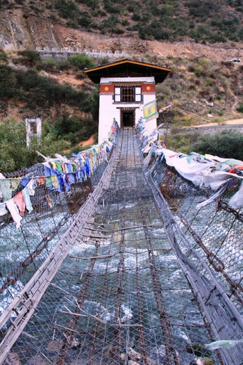 Thimphu’yu geride bırakıp bir sonraki durağımız Paro’ya doğru yola çıkıyoruz. Paro’ya doğru yolun sağında nehrin hemen karşısında bir tepe üzerine kurulmuş Tamchhog Lhakhang tapınağı Çıkıyor karşımıza. Fakat görmek istediğimiz ünlü Tibetli “Köprü İnşa Eden” Thangtong Gyalpo’nun soyundan gelen kişilere ait bu özel tapınak değil. Bhutan tarihinde önemli yeri olan bir şahsiyet Thangtong Gyalpo tarafından yolun hemen kenarındaki Pa Chhu (Pa Nehri) üzerine inşa edilmiş 15. Yüzyıldan kalma demir asma köprü asıl görmek istediğimiz…