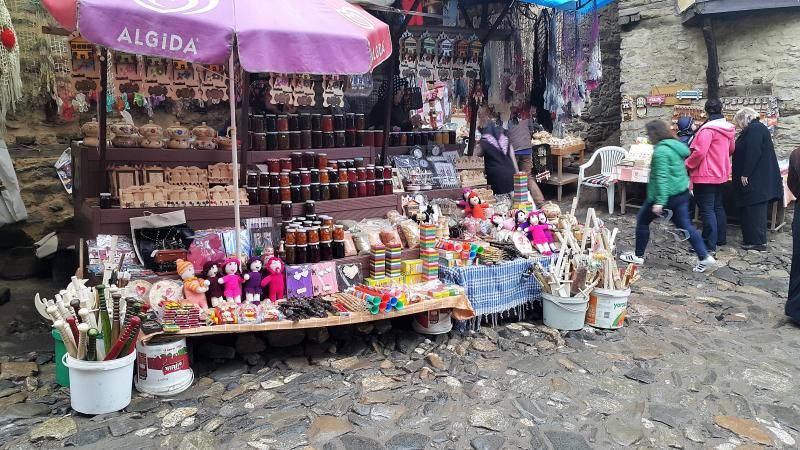 Tarihi dokusunu kaybetmeden yaşayan köydeki evlerin bazıları restore edilerek, dükkan, kafe ve restoran olarak hizmet vermeye başlamış. Küçücük tezgahlar, minyatür dükkanlar ve köy pazarı gibi bir yer var köyün hemen girişinde. Ev yapımı reçeller, sebze, meyve, domates ve biber salçası, peynir çeşitleri, ev baklavası, erişte, köye özgün ekşi mayalı, odun ateşinde pişen köy ekmeği, cevizli ekmek, patlıcanlı, cevizli salçalar, ısırganlı köy tarhanası, silor (mantı), kurutulmuş meyveler ve daha neler neler…