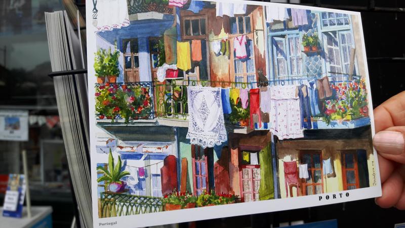 Porto’nun olmazsa olmaz horoz figürlü magnet, renkli metal üç boyutlu horoz figürleri, figürlü şişe mantarı, önlükler, Porto manzaralı çanta, yerel işlemeli örtüler ve kartpostallarımızı aldık.