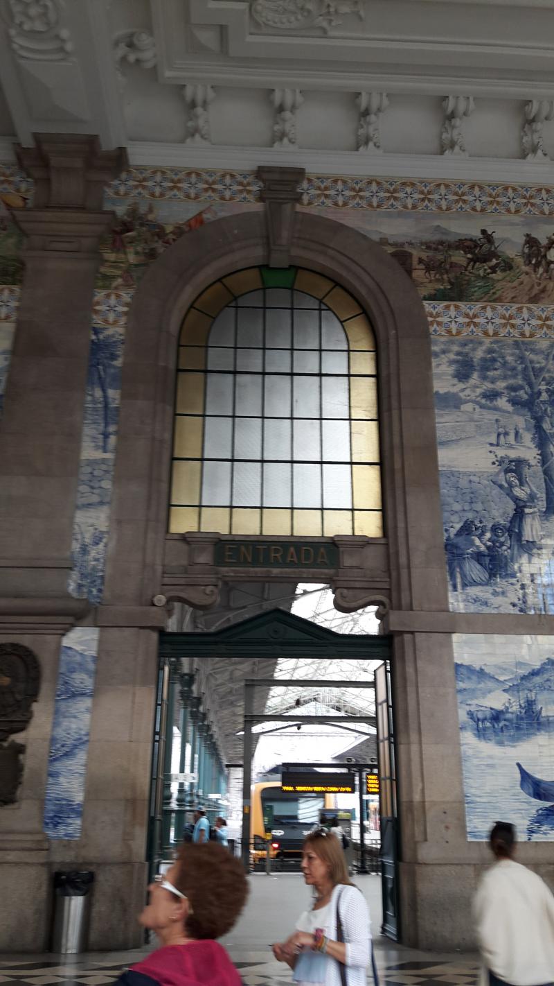 Sao Bento Tren İstasyonu dış görünüşü görkemli. İçerisine girdiğiniz zaman bir resim galerisi gibi olan istasyonun duvarlarında; çeşitli hikâyeler, tarihi ve dini olaylar, porto sembolleri resmedilmiş. 20.000 adet azulejo tekniğiyle yapılmış fayansları, çini ustası meşhur Jorge Colaçoya ait işlemeler, desenli yer döşemesi ile farklı bir zaman tüneline girmiş gibi hissettim. Tarihi yapılar oldukça iyi korunmuş.