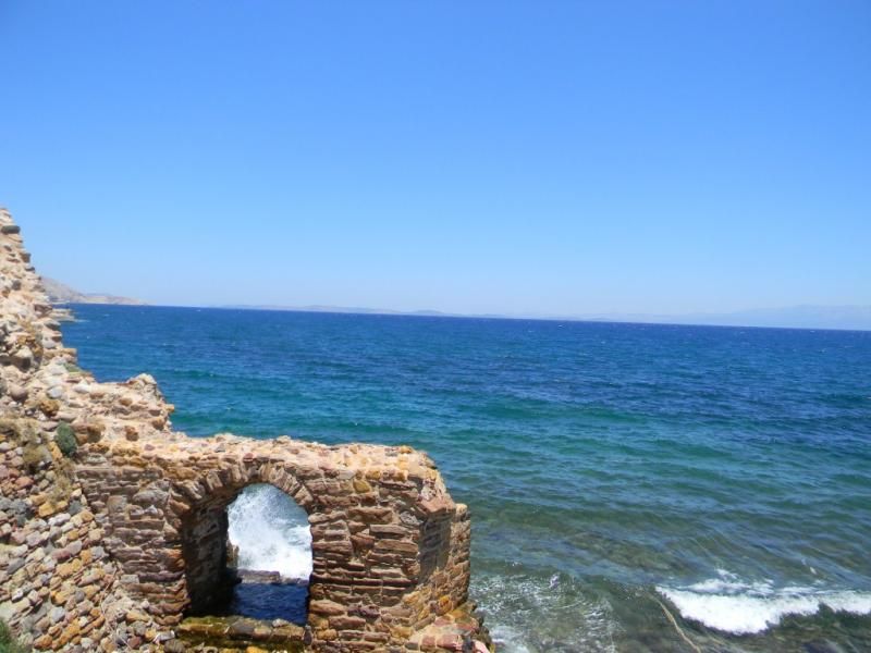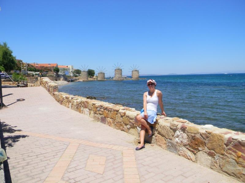Çantalarımızı otele bırakıp ada merkezini keşfe çıktı tabi ki de hemen... Cunda sokakları gibi keyifli küçük dar yollar taş evler hoşunuza gidecek. Kale olarak tabir edilen ama pek de fazla bir şeyinin kaldığı söyleyemeyeceğim surlar hemen limanın arkasında kalıyor. Oraya yürüyerek gidip fotoğraf çekmeye çalıştık. Sonrasında benim adayla ilgili hemen her broşürde gördüğüm (tüm adalarda olan) değirmenleri bulmaya adadık kendimizi. Rastlantı eseri yine bir dar yoldur diye tırmandığımız bir merdiven muhteşem manzaralı bir evin bahçesine çıktı : ) Manzaraya sizde bayılacaksınız.