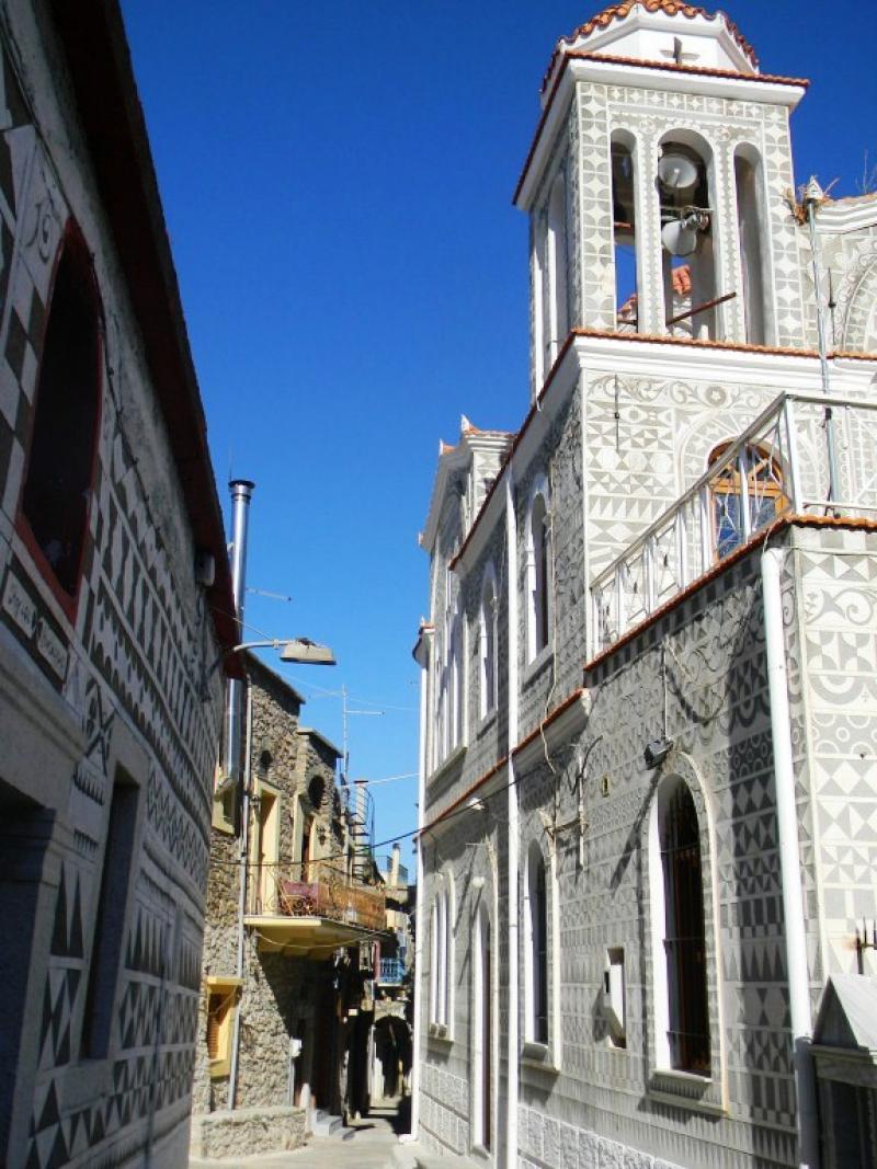 Hemen bir dipnot yollar hiç öyle dağ yolu gibi değil şehir merkezlerine çok dalmazsanız rahat araba kullanırsınız. Pyrgi güzel fotoğraf çekip kilise meydanında oturup keyifle kahvenizi içeceğiniz bir mekân... Kemerli yolları, binalararası yakınlıkla bana biraz İtalya’da Toscana evlerini hatırlattı burası. Belki sevmemin nedenlerinden biri de bu... Sokaklarında yaşlılarıyla Toscana da bende güzel hisler bırakmıştı. Tekrar tekrar gitme isteğim ondandır.