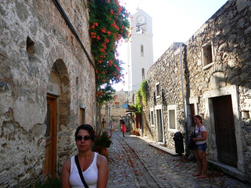 Neyse biz araba kiralayıp kendimize rota cızdık. Çncelikle Karfas Plajı’nda kısa bir deniz molası sonrasında yaklaşık 20 dakika uzaklıktaki Pyrgi Köyü’ne geçtik.