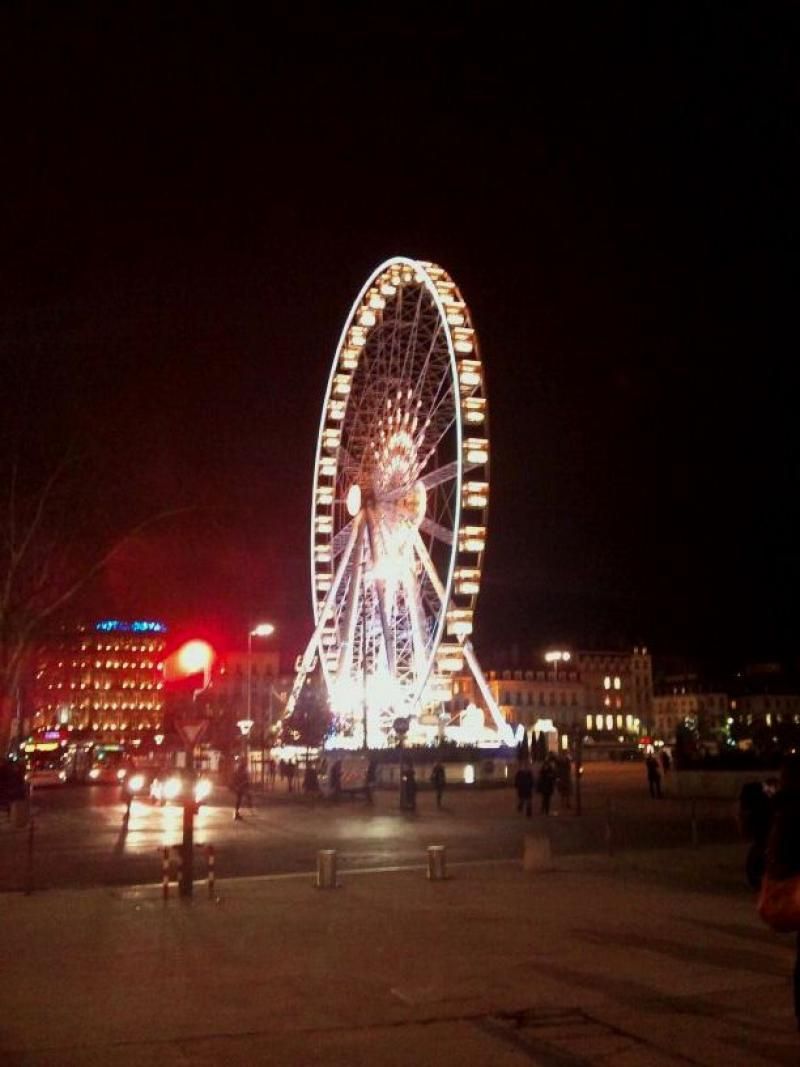 Lyon’un tarihi yarımadasının (Presqu’ile) merkezi olan Bellecour Meydanı’na iniyoruz. İner inmez, ışıl ışıl Lyon dönme dolabı bizi karşılıyor. Binmemek mümkün mü? Gece bastırmadan önceki mavi saatte; gökyüzünün tatlı lacivert fonu üzerinde parıldayan şehrin ışıkları ile geldiğimiz modern bölge Part-Dieu ve yüksek katlı blokları, tarihi yarımada Presqu’ile ve yükselen tepesi Croix-Rousse, tepede şehrin hâkimi Fourvière Bazilikası ile Vieux Lyon, Saône ve Rhône Nehirleri’ni birleştiren köprüler, keyifli bir kuş bakışında göze çarpıyorlar.