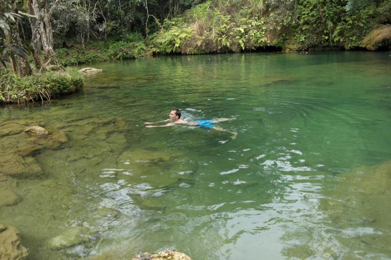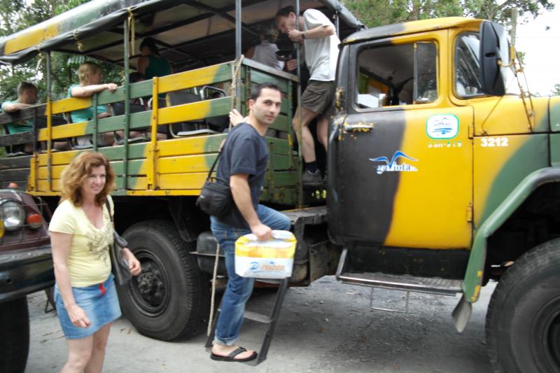 Ertesi gün buradan eski Rus kamyonetlerinin kasasında Escambraye Dağı'na tırmanış safarisi yaptık. Escambraye Dağı'ndan, Guanayara Nehri'nin eteklerine ulaştık. Guanayara Nehri El Rocio Şelalesi'yle bir göle dökülüyor. Bu muhteşem gölün tadını yüzerek çıkardım.