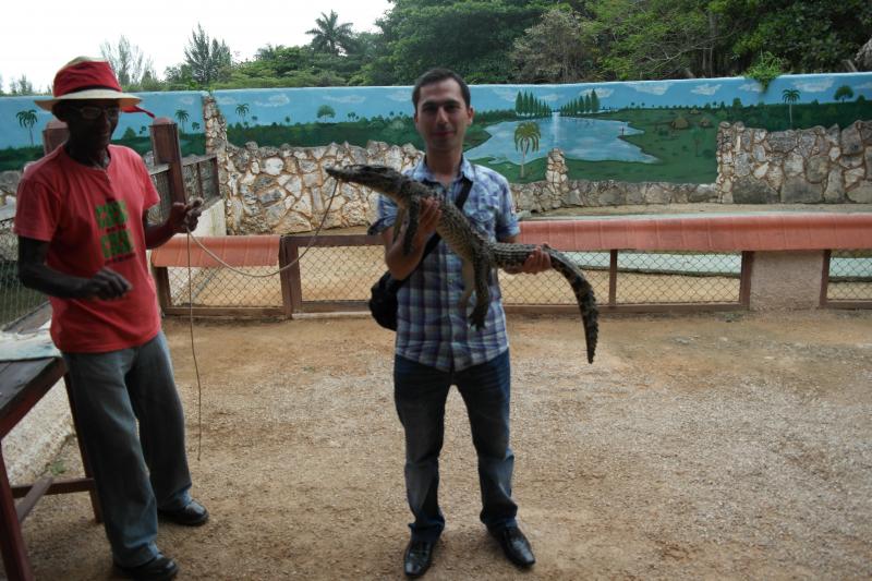 Vinales Vadisi'nden Cienfuegos'a giderken yol üzerinde her türlü çeşit çeşit hayvanın barındığı dev bir parka uğradık. "Parc National"da başta timsahlar olmak üzere her türlü hayvan ve bitki örtüsüyle iç içeydim. Bir ara orta boy bir timsahı elime alarak poz verdim. Parkta bu bölgenin geçim kaynağı olan şeker pancarı suyunu çıkarmada kullanılan aletlerle bizzat kendi ellerimle şeker pancarı suyunu çıkardım. Parkta ilerlerken karşıma çıkan bir müzik grubuna çelik üçgen çalgısıyla eşlik ettim.