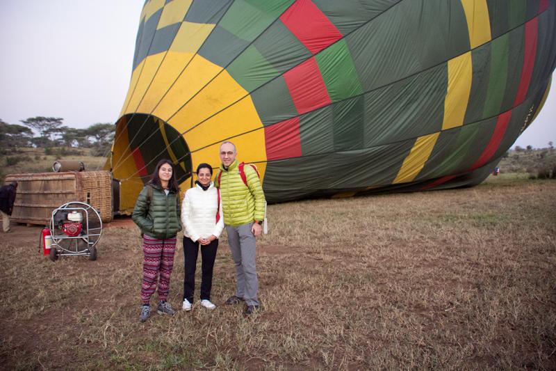 Sabah saat 4:00'de “Jambo jambo” diye seslenen görevliye biz de “jambo jambo” diyerek gözlerimizi yeni güne açtık, daha doğrusu açmaya çalıştık. Dışarısı hala zifiri karanlıktı, biraz kalın giyinerek balona gideceğimiz araca bindik. Karanlıktaki yaklaşık 1,5 saatlik yolculuğun ardından balonun kalkacağı yere geldiğimizde gün aydınlanmaya başlamıştı. Balonun kaptanı önce birlikte seyahat edeceğimiz Alman aileye kendini tanıtıp bilgi verdikten sonra yanımıza geldi. İngilizce kendisini tanıtmaya başladı, ben de “Merhaba ben Levent" dedim. İlk anda duyduğu Türkçe’yi algılamakta zorlanan pilotumuz Kayserili, Kapadokya'dan 4 yıl önce buraya gelip yerleşmiş Nihat Bey. Bu süre içinde karşılaştığı ikinci Türk misafirleri bizmişiz. Biraz sohbetten sonra balonumuz uçuş için hazırdı. Hemen içine atladık, yavaş yavaş havalandık.