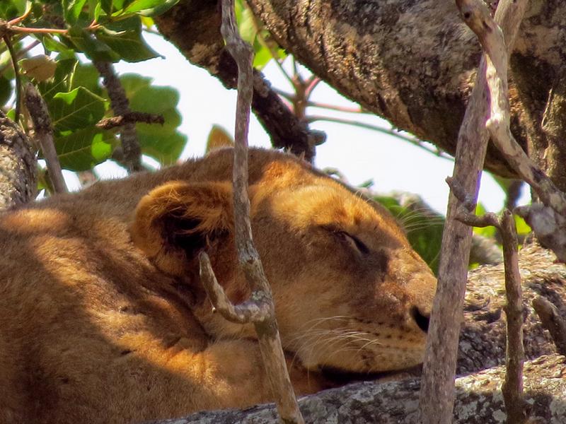 Yemekten sonra otlara yatarak biraz keyif yaptıktan sonra yola koyulduk ve o kayalıklara neden simba kayalığı dendiğini anladık. Çünkü rehberimiz bir kayalığın önünde durdu, biz yine bakınırken elindeki dürbünü uzatıp bize az ilerimizde güneşin altında şekerleme yapan aslanı gösterdi. Doğadaki tüm yırtıcılar sadece aç olduklarında avlanıyorlar. Aslanlar üç-dört günde bir, timsahlar yedi günde bir avlanırmış. Antilop, zebra, yaban öküzü, bufalo gibi otçullar ise gün boyunca sürekli yiyorlar.