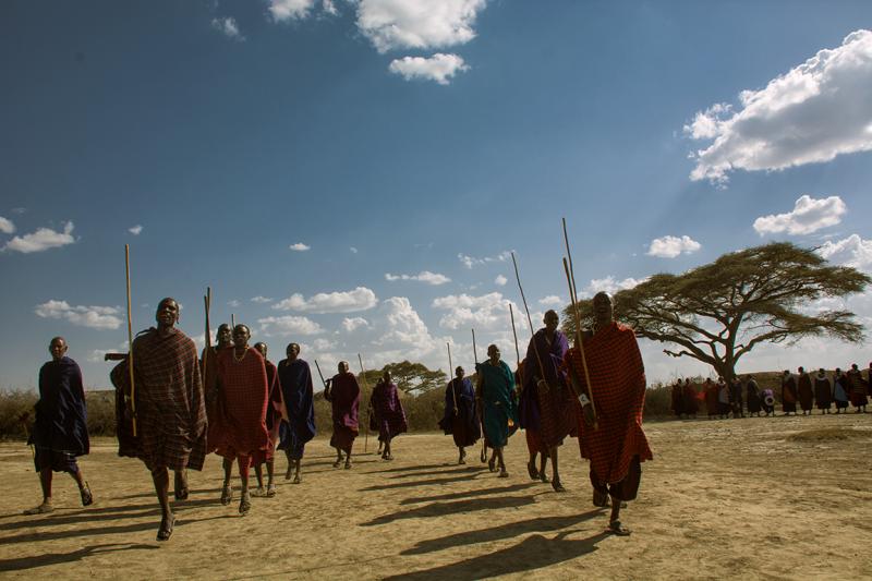 Rehberimize bir köyü ziyaret etmek istediğimizi söylediğimizde, bunun mümkün olduğunu ancak köyün liderinin bu ziyaret için köy adına bir bağış isteyeceğini söyledi. Biraz sonrada yoldan ayrılarak direksiyonu bir köyün girişine doğru çevirdi. Köyün biraz ilerisinde durduk. Araçtan inerek bizi karşılamaya gelen köy liderine doğru yürümeye başladığımızda meraklı gözlerle çalıların arkasından bize bakan çocukları fark ettik. Rehberimizin kısa görüşmesinden sonra bizi kabul edeceklerini söylediler. Ancak bu süre içinde bir kişi bize eşlik edecek ve onun yanından ayrılmayacaktık. Biraz sonra köyün giriş kapısından tüm kadın ve erkeler karşılama töreni için dışarı çıkmaya başladılar. İki grup halinde yarım ay şeklinde dizilerek önce erkekler daha sonra kadınlar Masai şarkıları eşliğinde dans etmeye başladılar.
