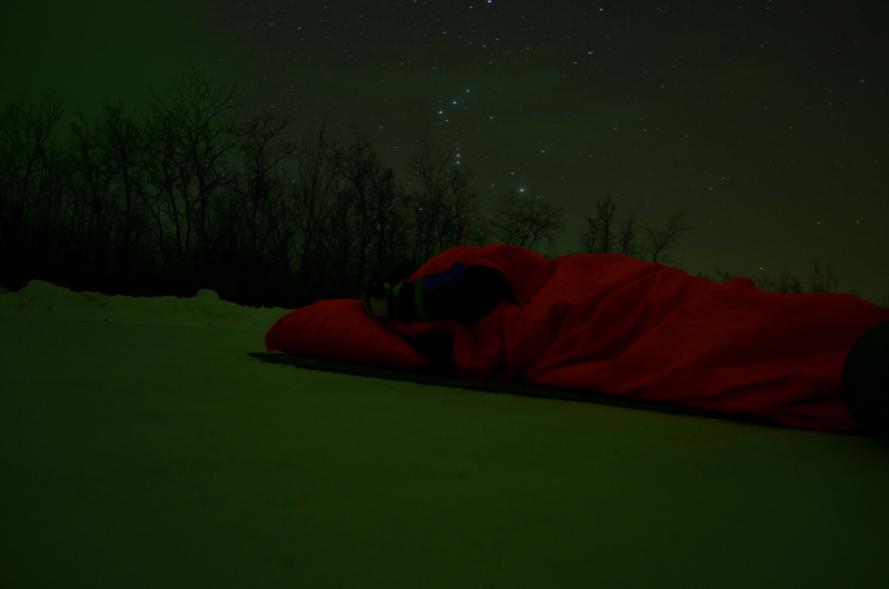 Yaklaşık 3 saat süren bir yolculuğun ardından Finlandiya sınırlarına giriş yaptık ve ışıkların görülme olasılığının daha yüksek olduğu donmuş bir gölün kıyısında aracımızı park ettik. Bir İngiliz çift, bir Alman çift ve bir Türk çiftten oluşan ekip hemen dışarıya dağıldık, fotoğraf makinalarımızı hazırladık ve ışıkları beklemeye başladık. Yaklaşık yarım saatlik bekleyişin ardından ışıklar yavaş yavaş belirmeye başladı. Kah çok zayıf, kah orta düzeyde olmak üzere bize göz kırpıyorlardı. Biz de fotoğraf makinalarımızı uzun pozlamaya alıp (25 sn.) fotoğraflarımızı çekmeye başladık.