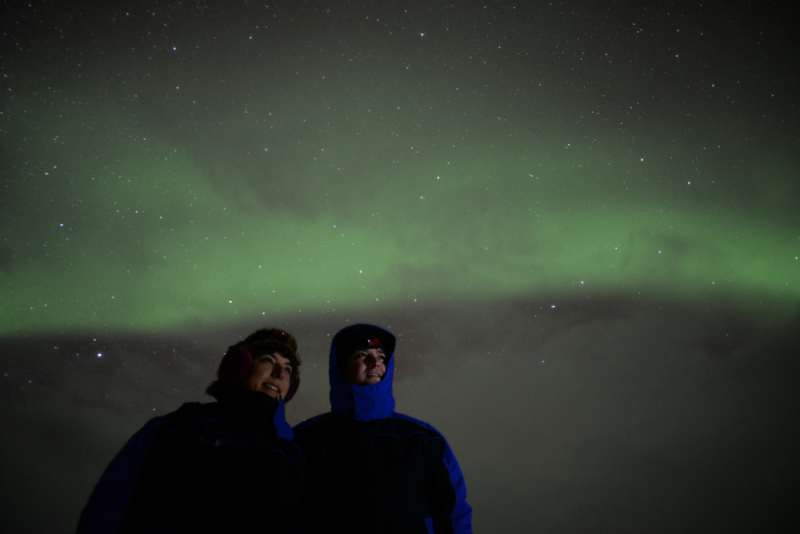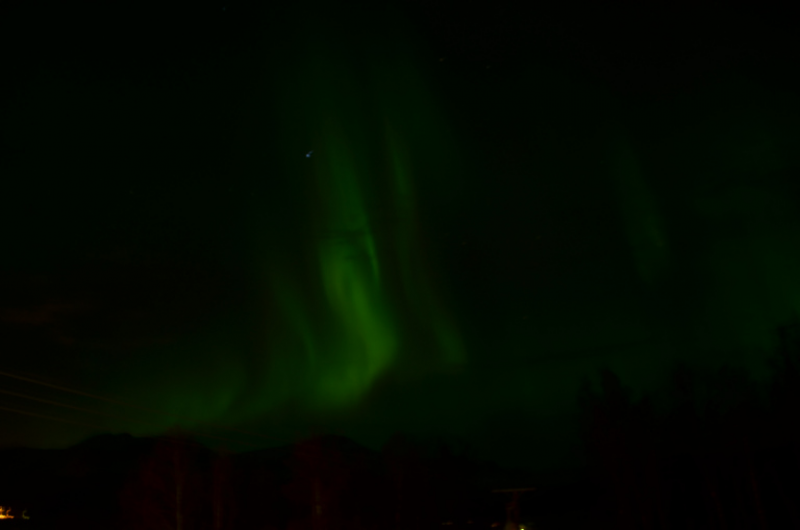 Kızak gezimizin bitiminde, köpek kulübelerinin yakınında güzel bir restoranda sıcacık bir balık çorbası içiyoruz. Uzun bir gezinin ardından çok güzel geliyor. Yemeğin tam ortasında dışarıdan birisi içeriye koşarak kuzey ışıklarının çıktığını haber veriyor. İnanılmaz bir heyecanla dışarıya fırlıyoruz ve muhteşem yeşil dalgalanmalar bizi karşılıyor. Tam anlamıyla bir dans resitali yaşatıyor bize. Bu unutulmaz deneyimin ardından otelimize geri dönüyoruz.