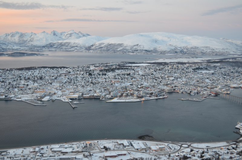 Norveç gezimizin en güzel noktalarından bir tanesi Tromso oldu. Oslo üzerinden yaklaşık iki saatlik bir uçak yolculuğunun ardından “Kuzeyin Parisi” olarak adlandırılan ve Kuzey Kutup Dairesi içerisinde bulunan bu şirin bölgeye ulaştık. Kasım ayının sonlarına doğru yaptığımız bu gezi süresince şehir içerisinde güneş ışıklarını direkt olarak hiç görmedik; sadece birkaç saatliğine dağlara vuran yansımasını seyretmekle yetindik.