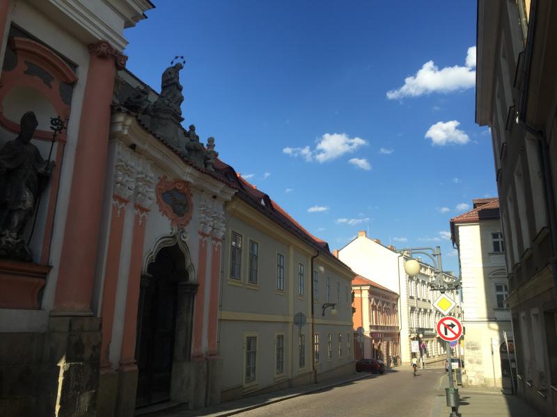 Kutna Hora şehir merkezine geldiğimizde dikkatimizi ilk çeken şey binaların az katlı ve bir o kadar da mistik oluşuydu. Her biri buram buram tarih kokuyordu. Binaların köşelerinde, cam fanusların içindeki aziz heykelleri dikkat çekiciydi.