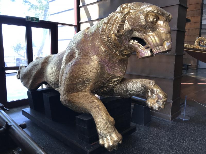 Fotoğraftaki; 10 çift kürekli, köşklü saltanat kayığı; Sultan V. Mehmet Reşad dönemine ait, 16,53 metre uzunlukta 2,40 metre genişlikte ve 4 metre yüksekliktedir. Saltanat armasının merkezinde Sultan Reşad'ın tuğrası bulunmaktadır. Bu saltanat kayığı dışında, Sultan Abdülaziz, Sultan Abdülmecid 13 kürekli yani 30-31 metre uzunluğunda saltanat kayıklarını da Müze'yi gezerken görebileceksiniz. Bunun yanı sıra dev bir tarihî kadırga Müze’ye ilk girdiğinizde sizi büyüklüğü ile şaşırtacak; 144 kürekçi tarafından çekilen bu kadırga 39,64 metre uzunluğunda ve 5,72 metre genişliğindedir. Yukarıda da bahsettiğim gibi Atatürk'ün kullandığı kayıklar ve Kurtuluş Savaşı döneminde kullanılan tarihî kayıklar da Müze’de sergilenmektedir.