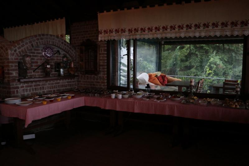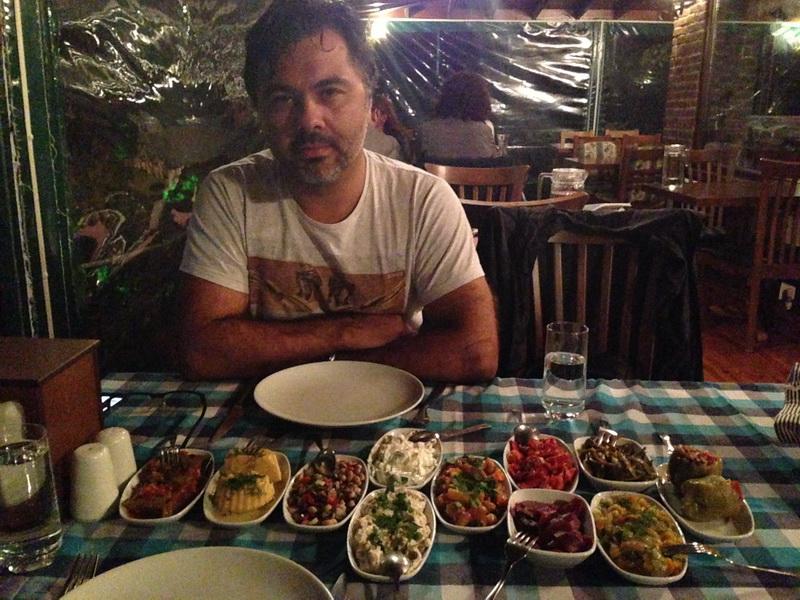 Ardından hemen yemeğe iniyoruz. Zeliş Hanım bu yemekleri kendisi hazırlıyormuş. En az 12 çeşit meze vardı. Mezeler her masaya ayrı ayrı servis ediliyor. Ana yemek olarak ciğer ve et sote tavsiye ederim, yanında da ev yapımı şarap. Bu şarabı da işletmenin sahibi Ali Bey yapıyor. Gerek yemekler, gerekse şarap çok lezzetli idi.