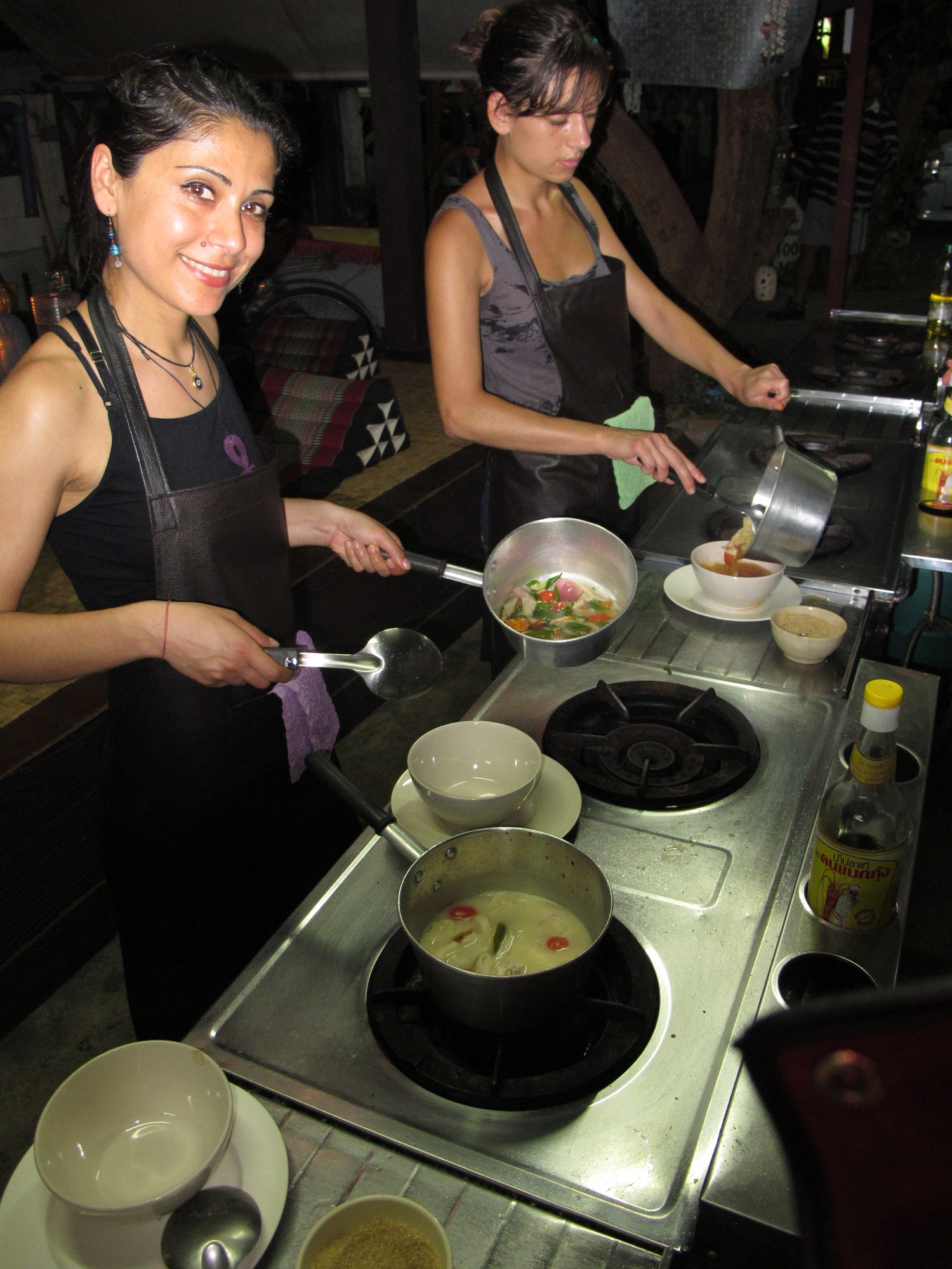 Daha ilk günümüzden, hangi gün hangi aktiviteyi yapacağımızı planlıyoruz burada. Masaj ve yoga kurslarından, orman trekkinglerine, bungee jumping’ten yemek ya da thai boxu kurslarına kadar sayısız alternatif var. Hepsini üç güne sığdırmamız mümkün değil, bu yüzden aralarından ikisini seçiyoruz: “Flight of the Gibbons” adı ile pazarlanan orman uçuşu ve Thai mutfağının inceliklerini öğreneceğimiz bir yemek kursu. Bu arada kurs demişken, Chiang Mai’ın çeşitli masaj okullarında Thai masajı öğrenmek batılılar arasında oldukça popüler. Masaj öğrenmek için değil de yaptırmak için nerelere gidelim derseniz, Chiang Mai bu konuda bir cennet. Merkezdeki ve surların içindeki sokaklar masaj salonundan geçilmiyor. Zaten fiyatlar o kadar ucuz ki birkaç farklı alternatifi deneyip en çok hoşunuza gidende karar kılmak en mantıklısı. 1 saatlik Thai masajı ya da ayak masajı fiyatı 2 – 4 Euro arasında değişiyor. Bizim favori masaj mekanımız ise bir tapınak avlusunda yere atılmış minderlere uzanarak açık havada masaj yaptırabileceğiniz Thai Healing Arts Association oldu. Hem fiyat çok uygundu (1 saatlik Thai ya da ayak masajı 3 Euro), hem de masörler çok iyiydi.