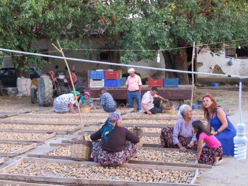 İnsanların içine atıldığı kuyunun yanından geçerek arka taraftaki incir sergisinin olduğu bölüme geçiyoruz. İncirleri boylarına göre dizen köylüler ile sohbet ederken işçilerden birinin kızı Medine yanıma geliyor. Küçük kız ve kardeşleri fotoğraflarını çekerken çok mutlu oluyorlar. ”İyi ki geldiniz. İnsanlar buraya gelip, içeri bile bakmadan gidiyorlar” diyen Kadir Bey'in eşi ise ne kadar güler yüzlü…
