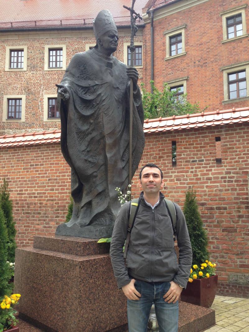 Bu arada Kamila’ya defaatle mutlaka bir kiliseye girmek istediğimi söylemiştim. Sabah Main Square’deki (adını hatırlamıyorum) kiliseye gireceğimize söz vermişti. Akşam da sözünü tuttu. Kiliseye girdiğimizde epey kalabalıktı. Düğün benzeri bir tören vardı. Güzel ve tarihi bir kilise, çok etkileyici. Bu arada, o kilisede ertesi gün Papa II. John Paul’un aziz ilan edilme töreni yapılacakmış. Kalıp görmeyi çok isterdim ama kısmet olmadı.