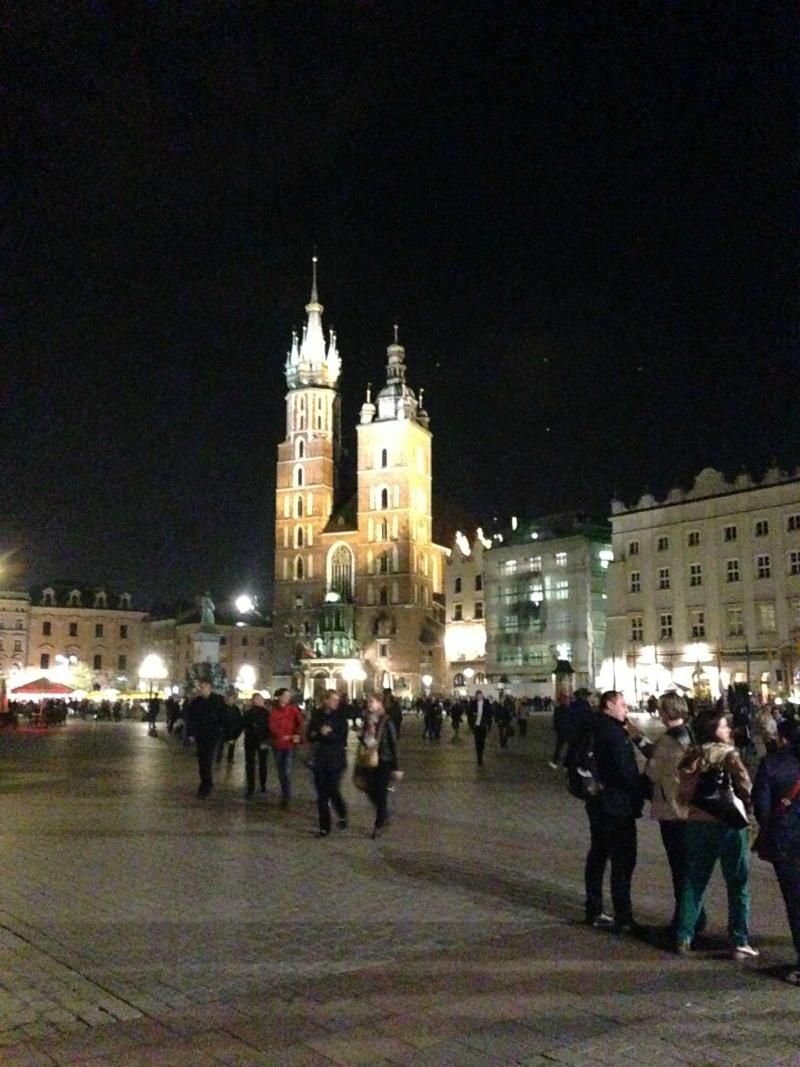 Neyse, akşam yemeğini meydandaki Sioux adında bir Amerikan restoranında yedikten sonra serbest takılma zamanı geldi. Hanımlar Kamila ve Yanis ile birlikte bir yerlere gitti ben de Mehmet Hoca ile birlikte meydandaki kapalı çarşı benzeri yere girdik (isim hafızam çok kötüdür o nedenle adını hatırlamıyorum ama Krakow Main Square’in tam ortasındaki yapı işte). Ufak tefek hediyelikler aldıktan sonra, çarşının meydana açılan kapısından çıkıp bir kafede bir şeyler içip uzun uzun sohbet ettik. Daha sonra ekibin kalanıyla buluşup, yürüyerek tren garına gittik.