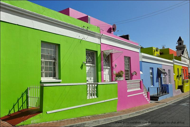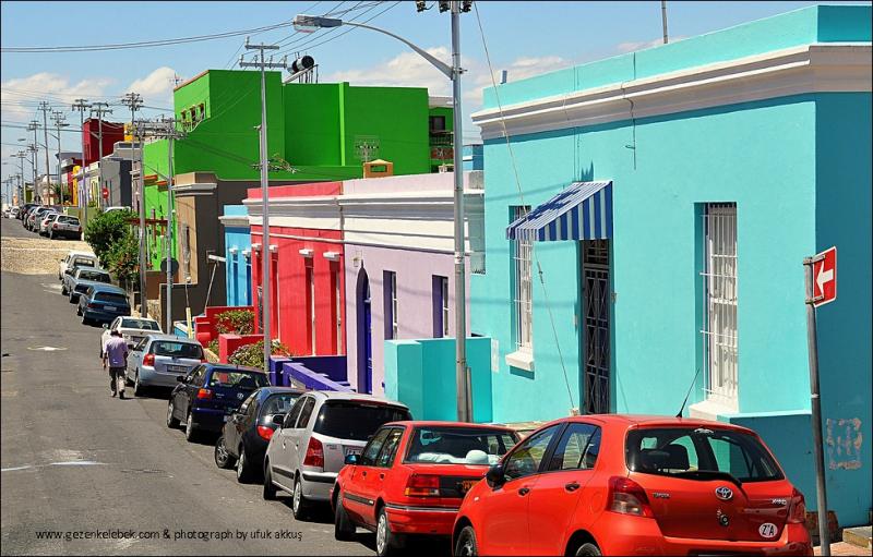 Cape Town’un en ünlü caddesi olan Long Street’e 5 dakikalık bir mesafede sessiz ama renkli bir mahalle Bo Kaap. Güney Afrikalı Müslümanlar olarak da bilinen Bo Kaap sakinleri yaklaşık 200 yıl önce Uzakdoğu'dan gelerek yerleşmişler Cape Town’a ve son derece cana yakın sıcakkanlı insanlar. Dediğim gibi en belirgin özellikleri renkli hatta rengarenk evleri. Cape Town’un kalbinde, Lions Head tepesinin altında Long Street’e bakan dağ eteklerine mahallelerini kurmuşlar. Long Street’te kaldığım hostelden bana yakınlığı yürüyerek yaklaşık 5 dakika mesafede idi. Hatta o hosteli seçme sebeplerimdendi başlı başına.